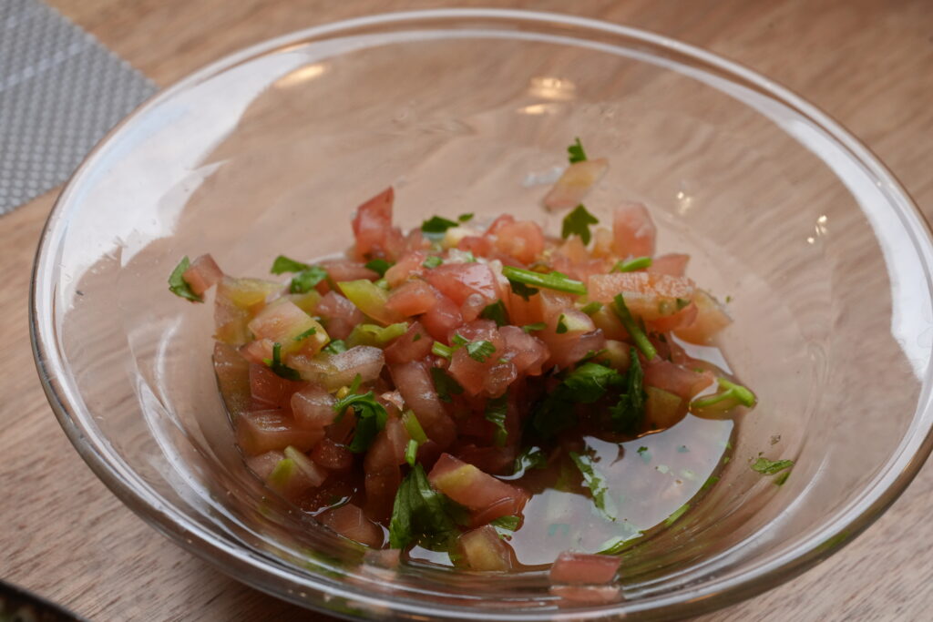 Do you dislike onions or get a stomachache from eating raw onions? When having a taco party, I recommend making a light and gentle salsa sauce that’s easy on the stomach. Wrap it up in a tortilla with avocado, beef, sour cream, and pizza cheese — it’s absolutely delicious!